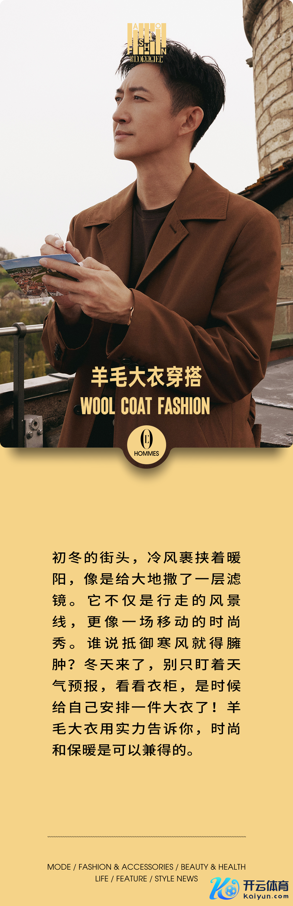 冬季的清凉让羊毛大衣成为男士衣橱中营造“叔感”的必备单品。而如何将这件经典单品穿出时尚感,既御寒又不失作风,才是咱们关爱的问题。