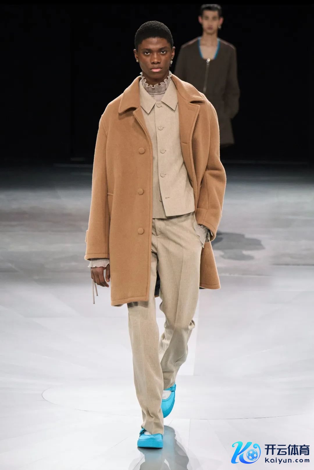 在 Dior 2024 秋冬男装系列中,羊毛大衣成为了一件象征性的单品。优雅的杏色调与雅致的羊毛质感井水不犯河水,呈现出从简却不失微妙的魔力。