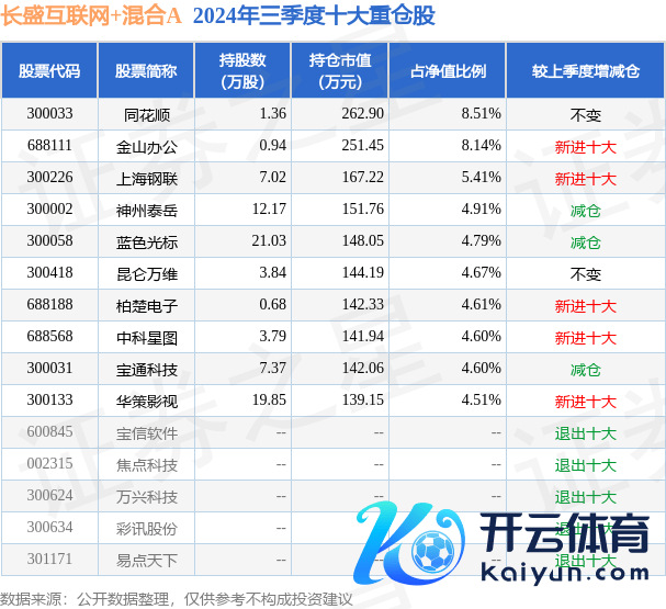 长盛互联网+夹杂A为夹杂型-纯真基金,阐发最新一期基金季报泄露,该基金钞票竖立:股票占净值比89.7%,无债券类钞票,现款占净值比10.5%。基金十大重仓股如下: