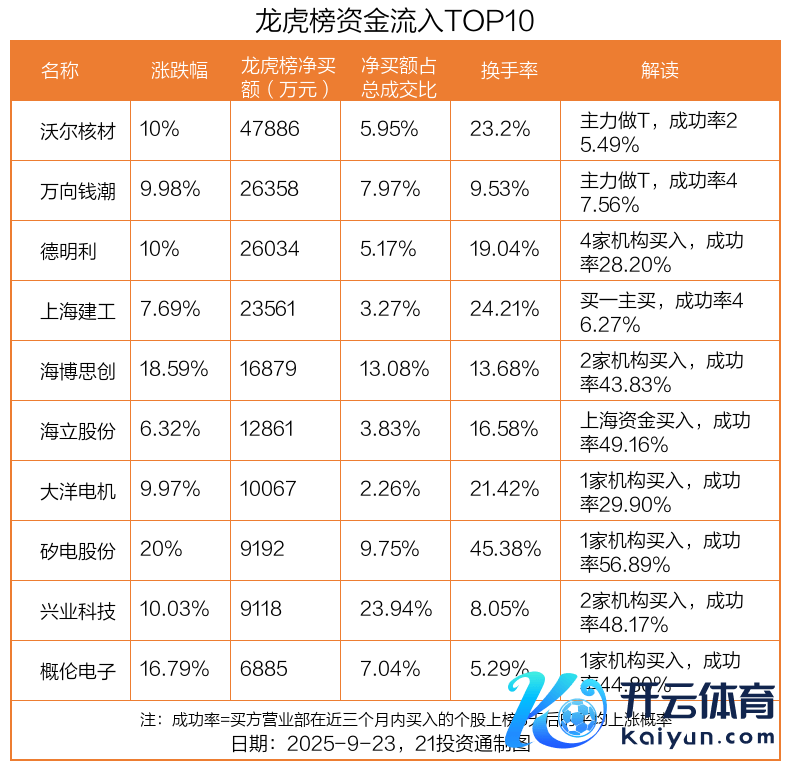 (原标题:4.79亿资金抢筹沃尔核材尊龙凯时体育,机构狂买德明利丨龙虎榜)