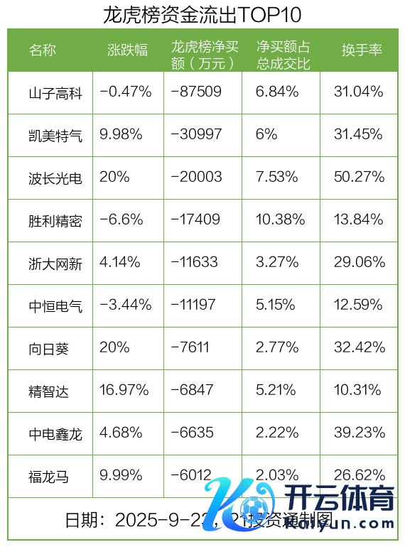 而龙虎榜中资金净流出最多的是山子高科(000981.SZ),被净卖出为8.75亿元,占总成交金额的6.84%。山子高科收盘下落0.47%,换手率为31.04%。